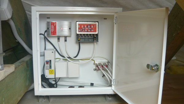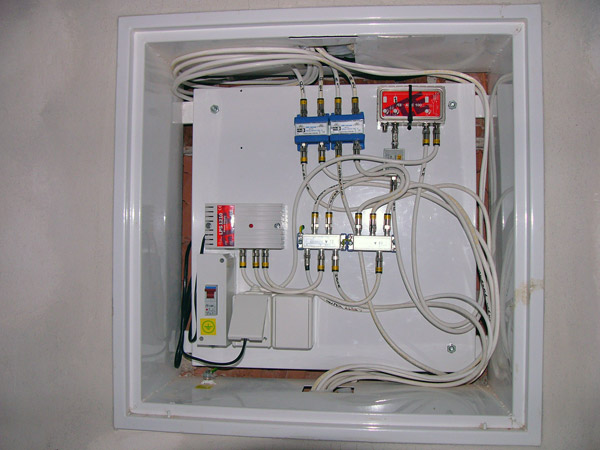 Jedná se většinou o uzamykatelné kovové skříně, ve kterých jsou umístěné pasivní a aktivní prvky pro anténní rozvod. Domovní rozvaděče musí splňovat přísná kriteria ČSN-EN. Jedná se především o zemní propojení, především je-li v rozvaděči přívod 230V, který musí být chráněn jisticím prvkem - jističem. Fotodokumentace jasně ukazuje, jak má být domovní rozvaděč vyroben. Optimální je osadit domovní rozvaděč světelnou signalizací jeho napájení. Často se totiž stává, že z různých příčin je vypnutý jistič v domovním rozvaděči a majitel STA musí zbytečně platit výjezd servisního vozidla. Tuto závadu si majitel může opravit sám. Většina firem tento problém neřeší a veškeré komponenty volně doslova nahází po celém prostoru. Takový rozvaděč může být nejen zdraví a životu nebezpečný, ale v některých případech může ohrozit i objekt. Některé rozvaděče se velmi často stávají nefunkčními a majitel objektu musí platit dvakrát za zhotovení STA - viz Levné a nepovedené instalace. Návrh rozvaděče by měl být v prvopočátku proveden tak, aby bylo možné bezproblémově rozšířit STA o satelitní příjem, nebo datovou síť.